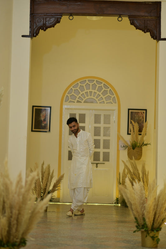 A men’s wedding is a special occasion filled with excitement, tradition, and celebration. The groom typically wears traditional or formal attire, such as a sherwani, suit, or tuxedo, depending on cultural and personal preferences. In many cultures, he may also wear a turban or special accessories symbolizing status and style. The groom's entry, often called the baraat in Indian weddings, is a lively procession where he arrives with friends and family, often accompanied by music and dancing.