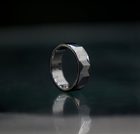 Silver pixel ring band for men