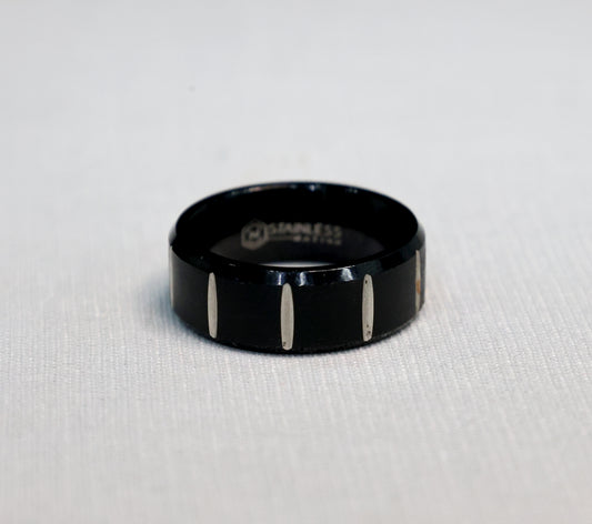Striped black ring band for men