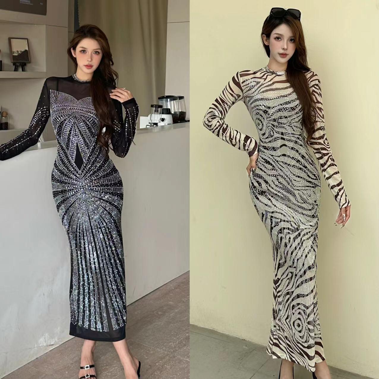Embrace the enchantment of our exquisite collection, featuring bodycon dresses that blend sophistication with allure. Each gown, from the Celestial Grace to the Mystic Shimmer, is crafted from premium sheer fabric that contours gracefully to your silhouette, adorned with meticulously placed rhinestones that catch the light with every step. These gowns feature a long, sleek design and see-through elements that combine to create a stunning display of elegance and charm. Whether you're gracing a gala, attending a luxurious event, or enjoying an elegant evening out, our dresses are designed to ensure you shine brightly.