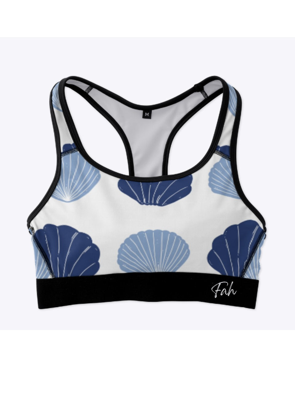 All-over printed sports bras are made of polyester and spandex for ultrasoft feel and flexible fit. High-quality, custom workmanship. Made using cut and sew assembly in the U.S.