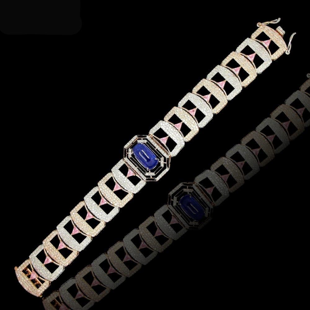 Expertly crafted with vibrant sapphires and sparkling diamonds, this bracelet exudes timeless elegance. Set in 14kt gold, it radiates a luxurious appeal that adds a touch of sophistication to any outfit. Elevate your style with this stunning piece.